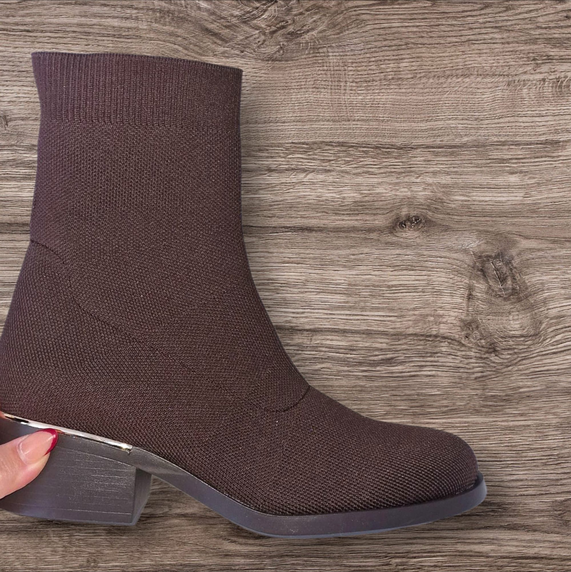 Modernos y versátiles, estos botines negros tipo calcetín se adaptan perfectamente al pie para una sensación de comodidad total. Su diseño minimalista con tacón angular y su tejido elástico los convierten en la opción ideal para un look casual chic o de oficina durante los días más frescos.