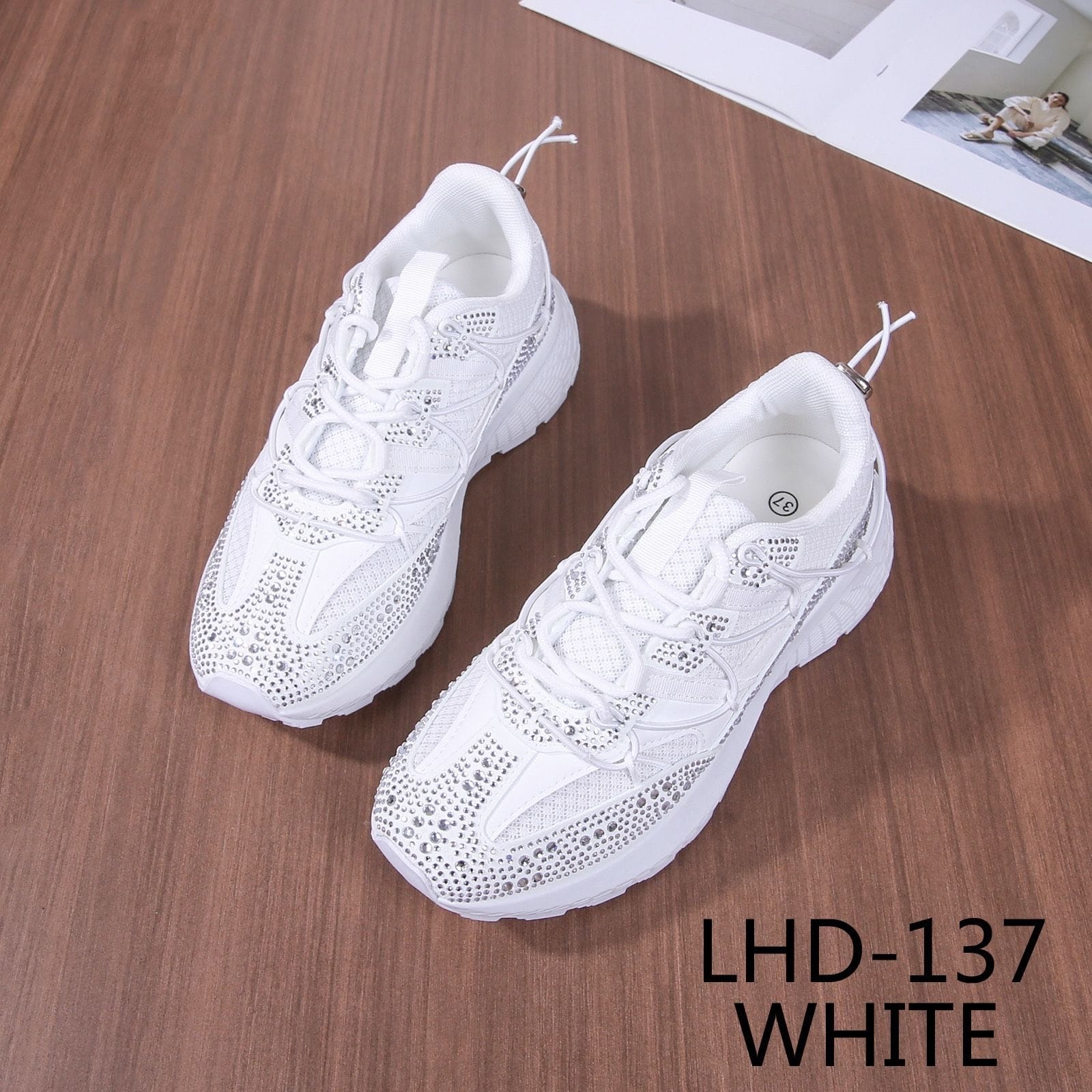 Zapatilla blanca decorada con stress que aporta un toque de brillo y glamour. Cómoda, moderna y perfecta para elevar cualquier look casual. Ideal para quienes buscan confort sin renunciar al estilo.