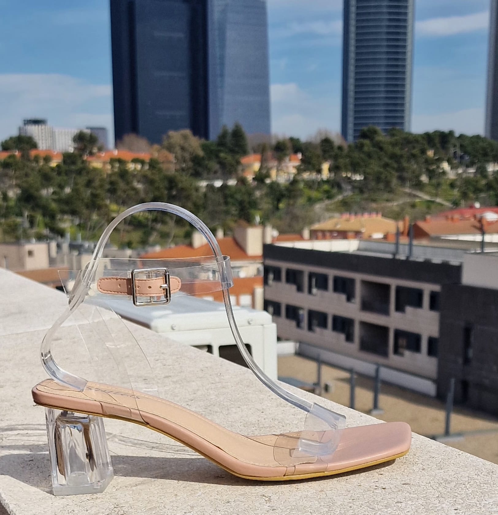 Diseñadas para un look elegante y moderno, estas sandalias de vinilo transparente con tacón de bloque añaden un toque sofisticado a cualquier vestimenta. Su diseño minimalista y sujeción con hebilla dorada ofrecen comodidad y versatilidad