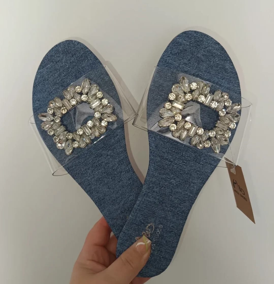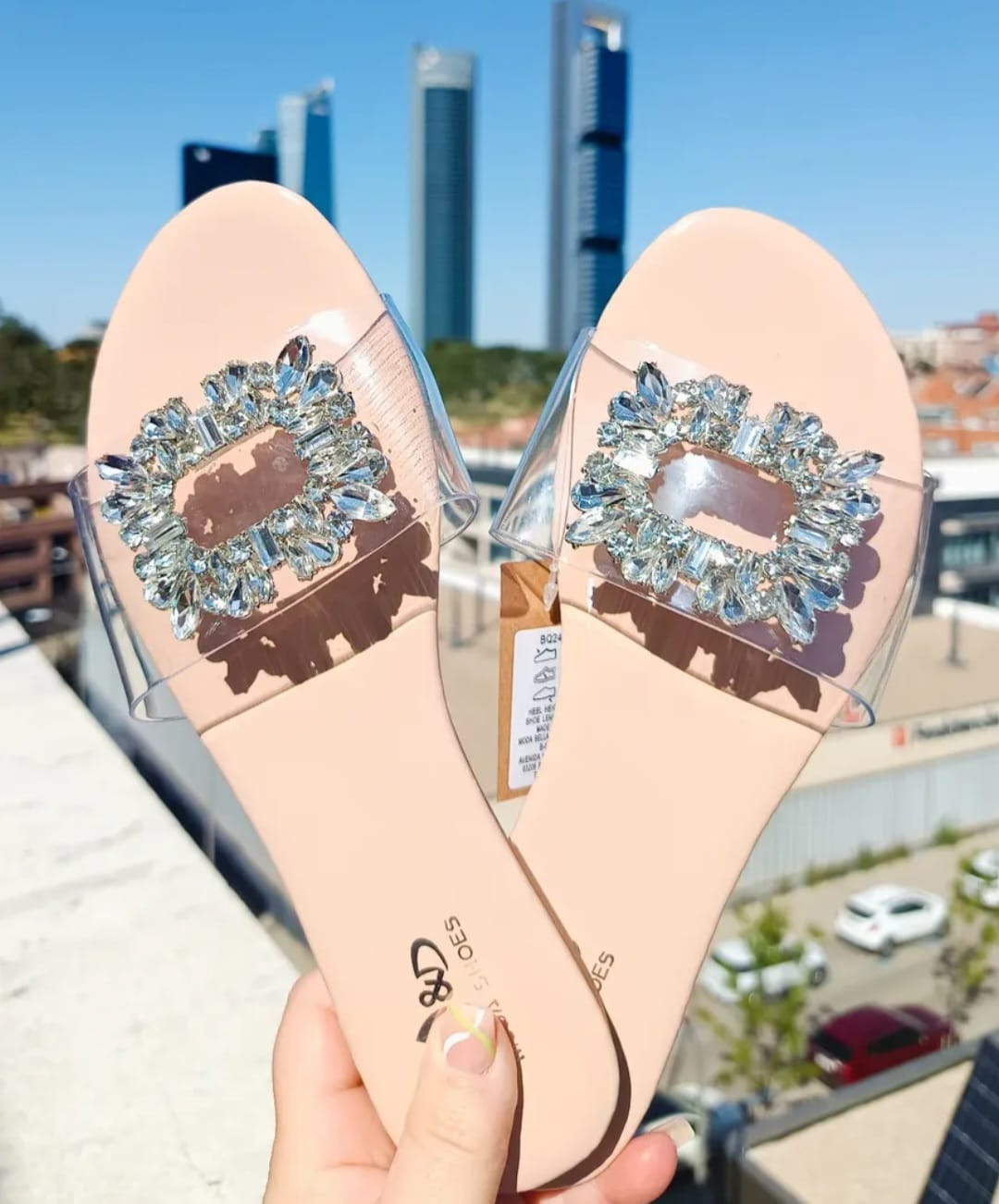 Luce sofisticada y cómoda con nuestras sandalias en tono vaquera y beige. Diseñada con tira transparente que estiliza el pie y un espectacular adornode cristales que aporta brillo y glamour. Ideal para combinar con looks veraniegos, vestidos de invitada o estilismos casuales con un toque elegante.